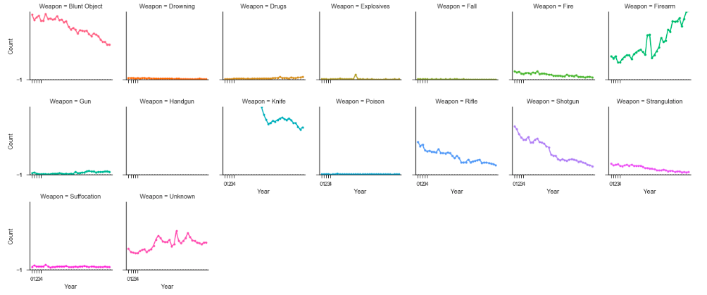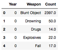 crime_time.columns = ['Year', 'Weapon', 'Count']
