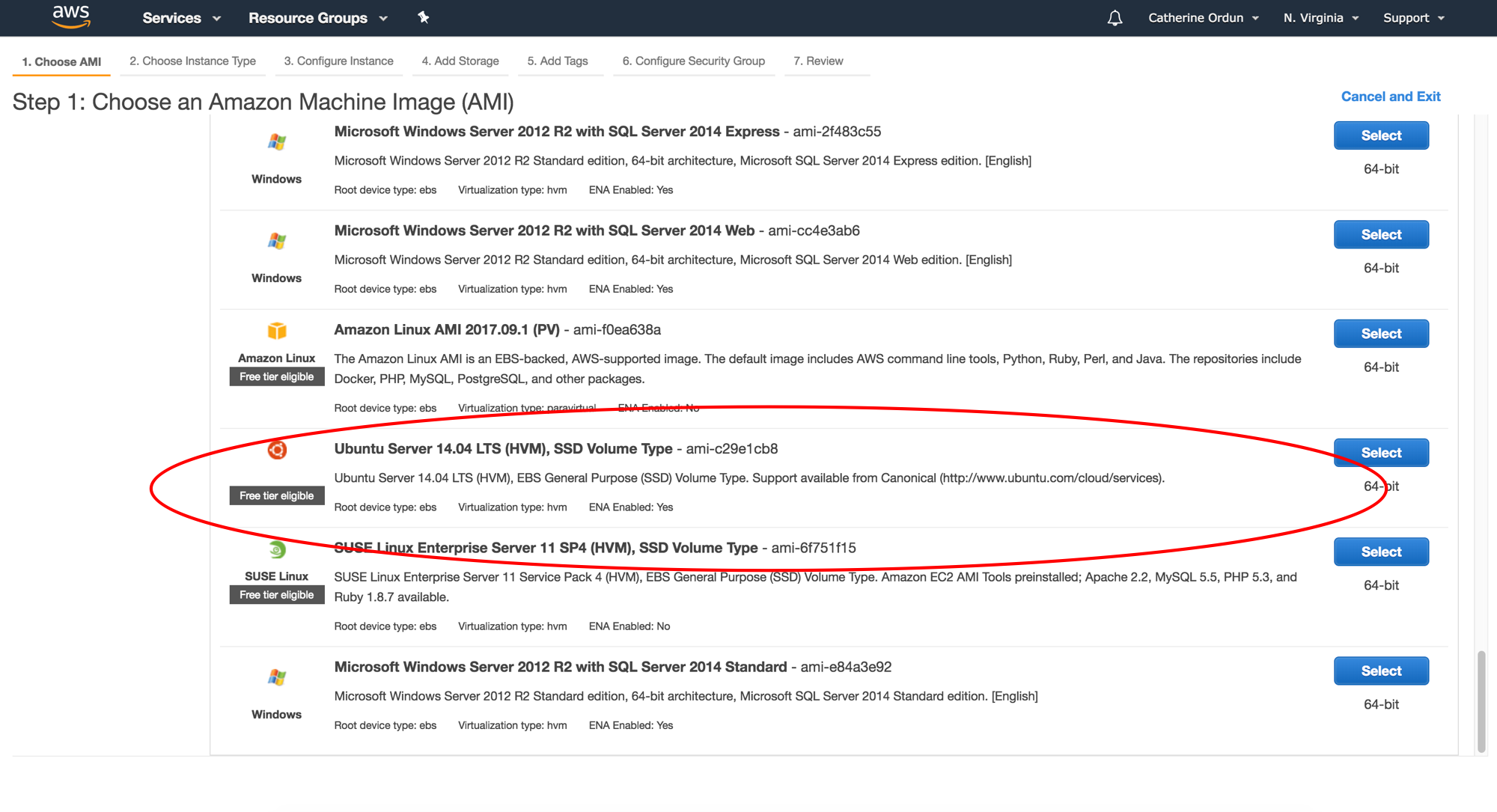 You'll be greeted by a screen with all the available AMI's, or images with the necessary libraries and dependencies, to select from. Scroll down to the bottom of the page and select the following:
