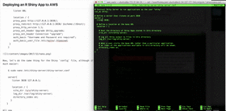 This will stop the nginx service, and stop the shiny-server so that we can make changes directly to the config files.