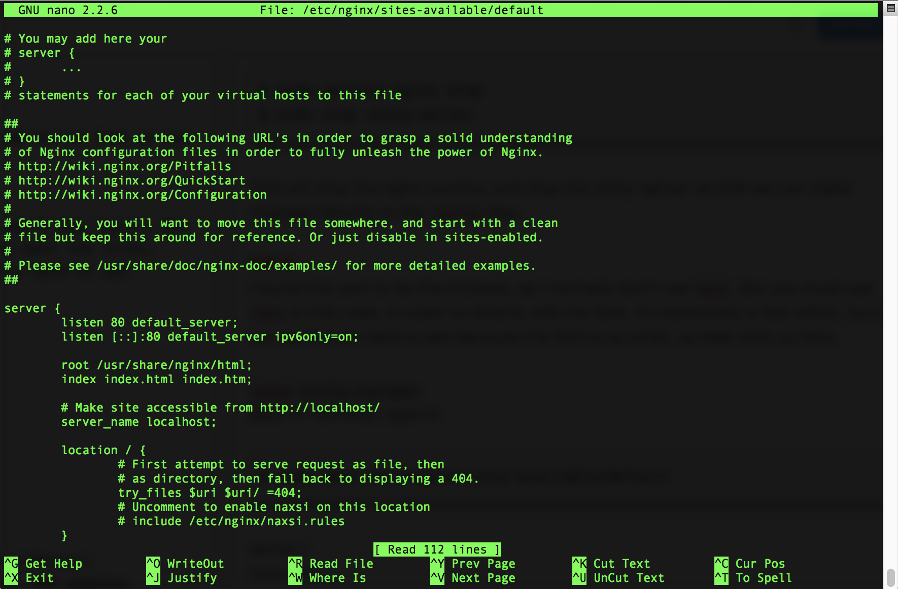 $ sudo nano /etc/nginx/sites-available/default