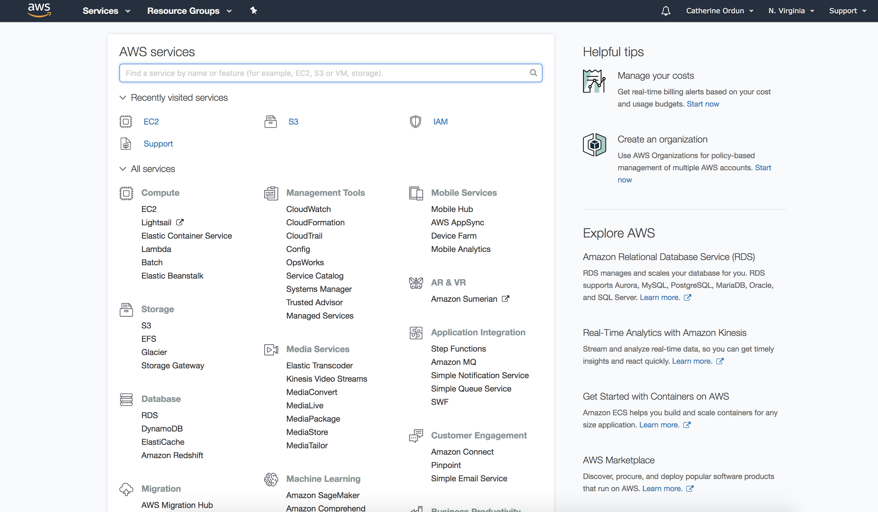 First if you haven't already, you need to sign up for an AWS account, set up your billing via credit card, and log in. You should be greeted by a screen like this: