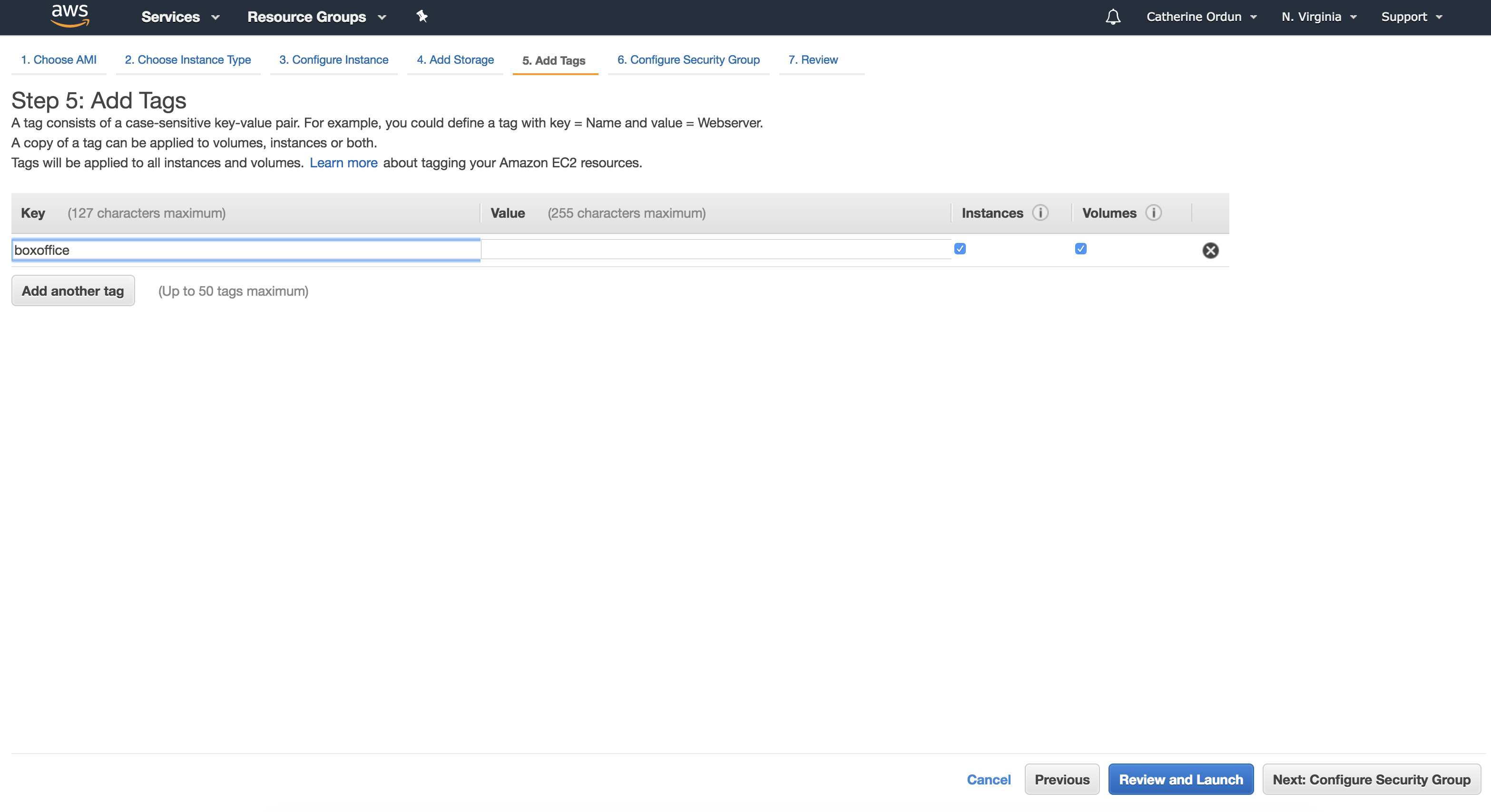 Click on "Next: Add Tags" and add a tag name of your choice. For this I'll call it boxoffice, but you can name it whatever you like.