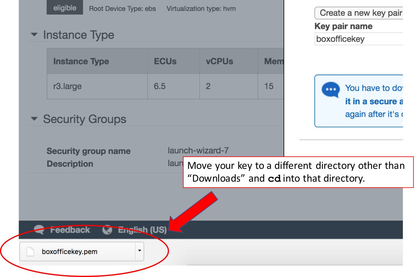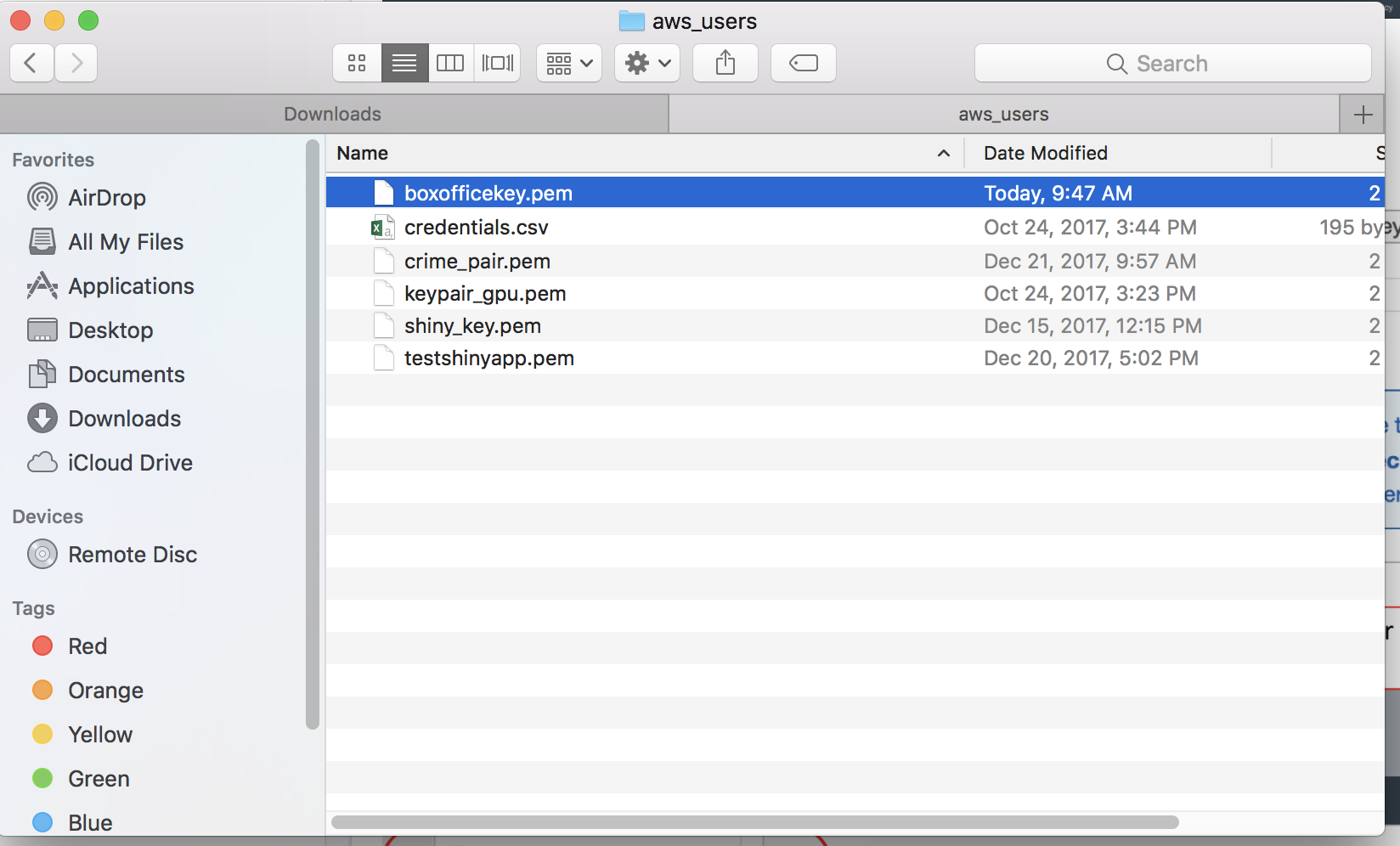 For example, I'll move my boxofficekey to a directory called aws_users for ease of access. I'm not a sysadmin by any means, so I'm sure that there are much more secure ways of doing this. But for this tutorial, I'm just showing that you should move it out of the Downloads folder.