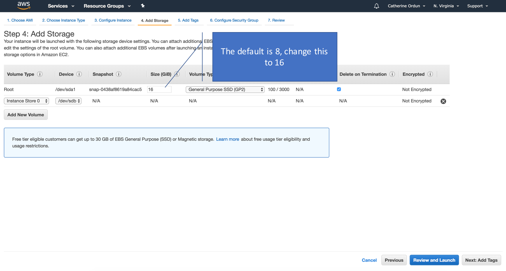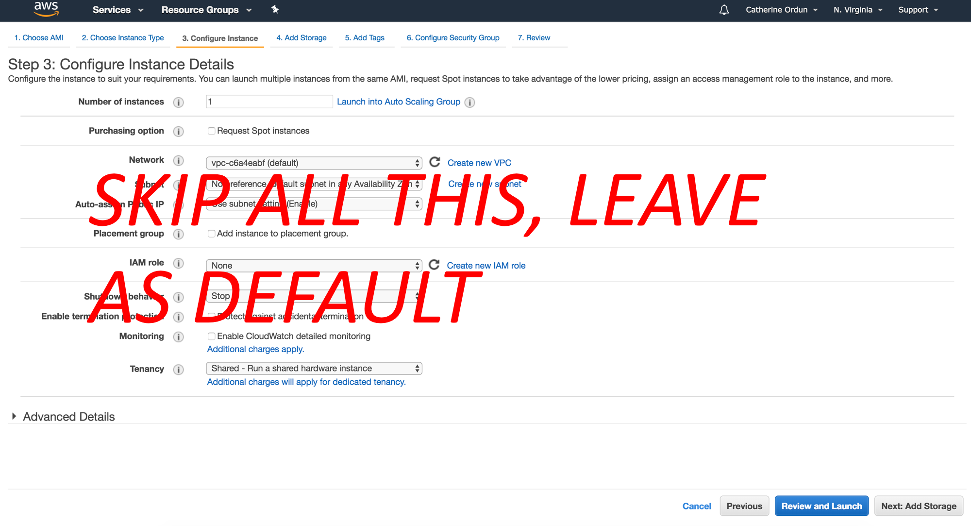 Click the button "Next Configure Instance Details", and just leave everything as default. Skip all these and click on "Next: Add Storage".
