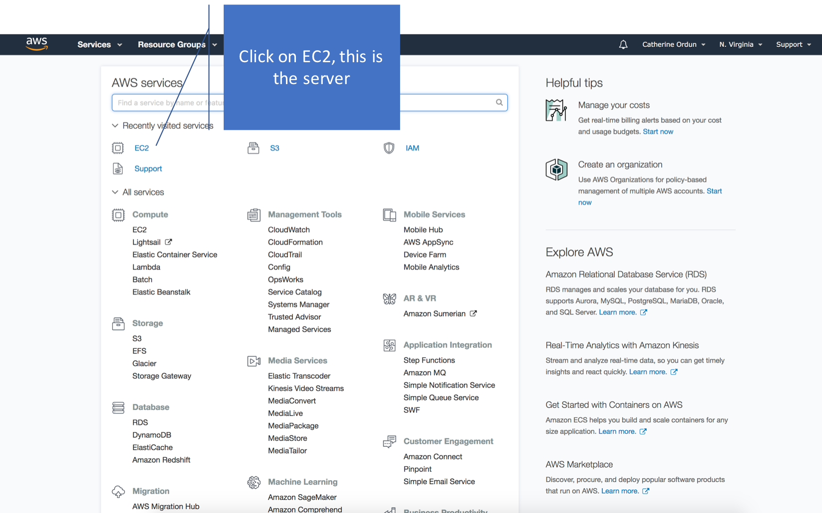Go ahead and click on EC2 on the console: