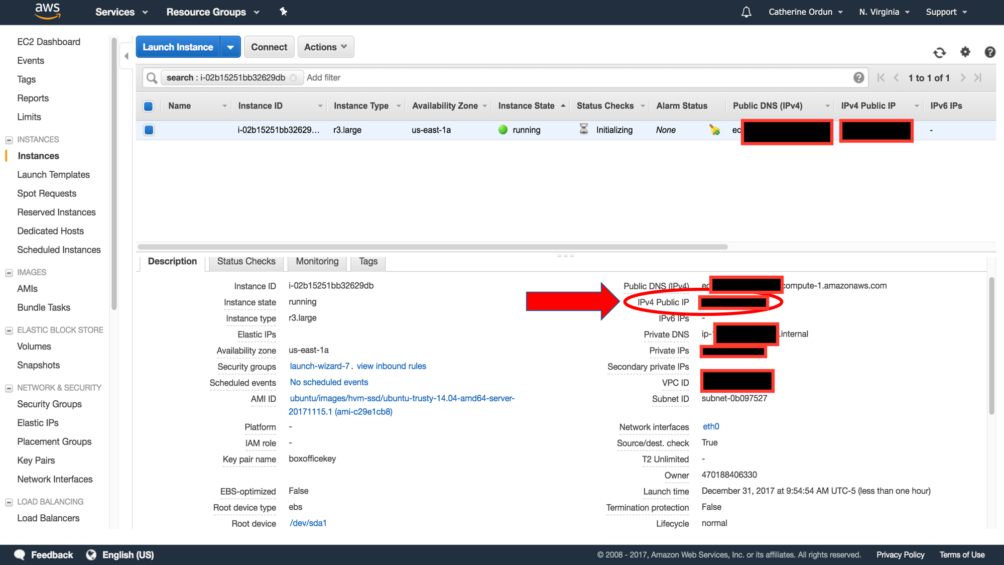 First, let's look at our successfully deployed R Studio server. If you recall from your instance launch page, in the bottom pane, there was the IPv4 address. This is the public IP address your data scientists will access in order to log in to R Studio.