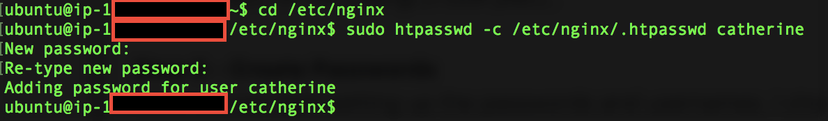 $ sudo htpasswd -c /etc/nginx/.htpasswd catherine