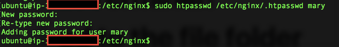 $ sudo htpasswd /etc/nginx/.htpasswd mary