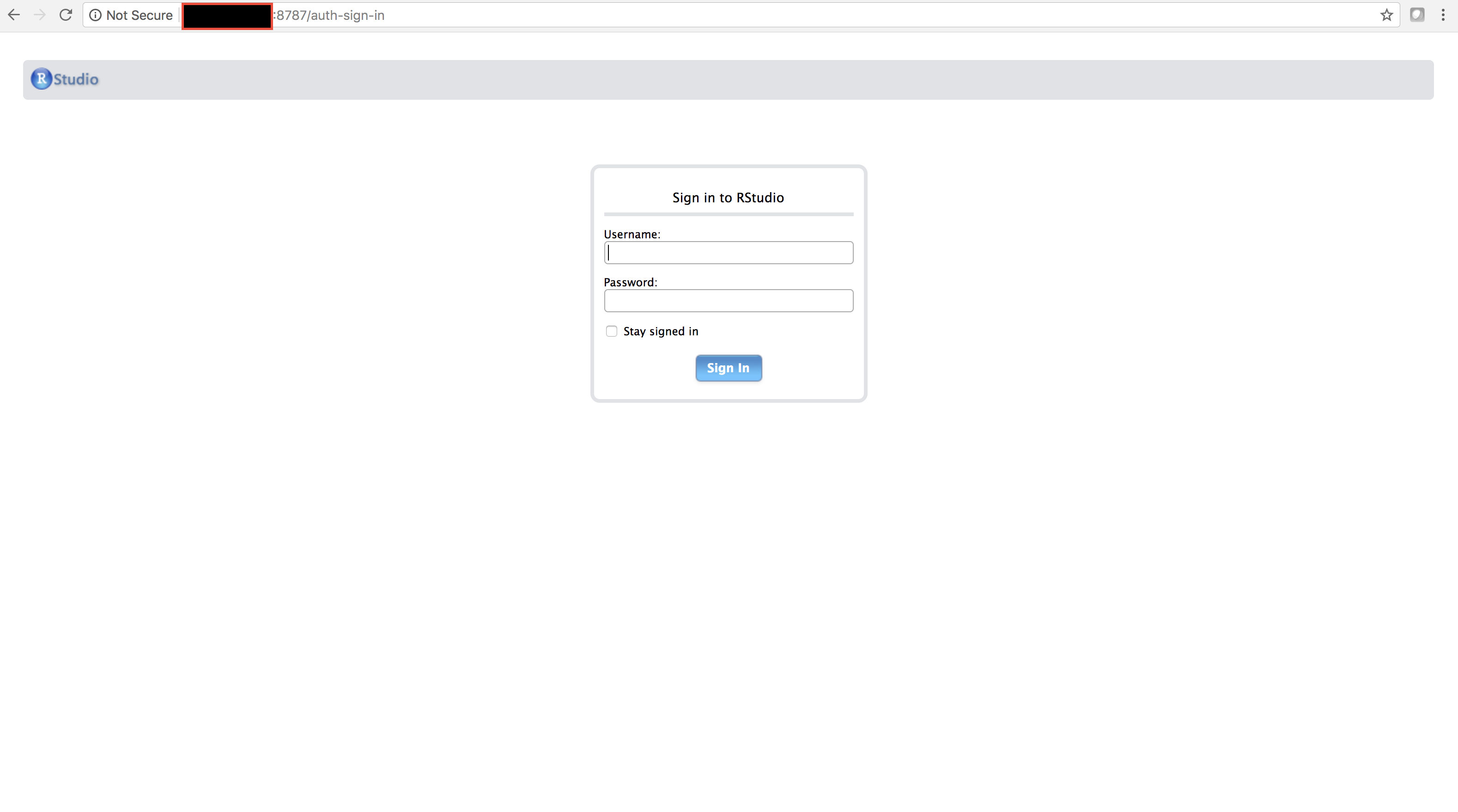 And just like when we created the Shiny App passwords and usernames, enter the password upon prompt. Now, you can log in again at http://ipaddresshere:8787