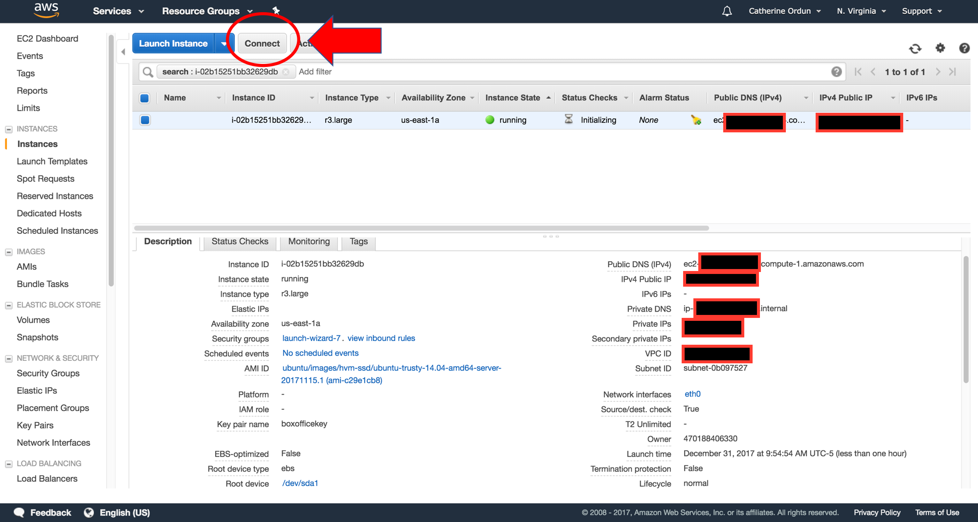 You'll be greeted with a screen called "Connect To Your Instance".