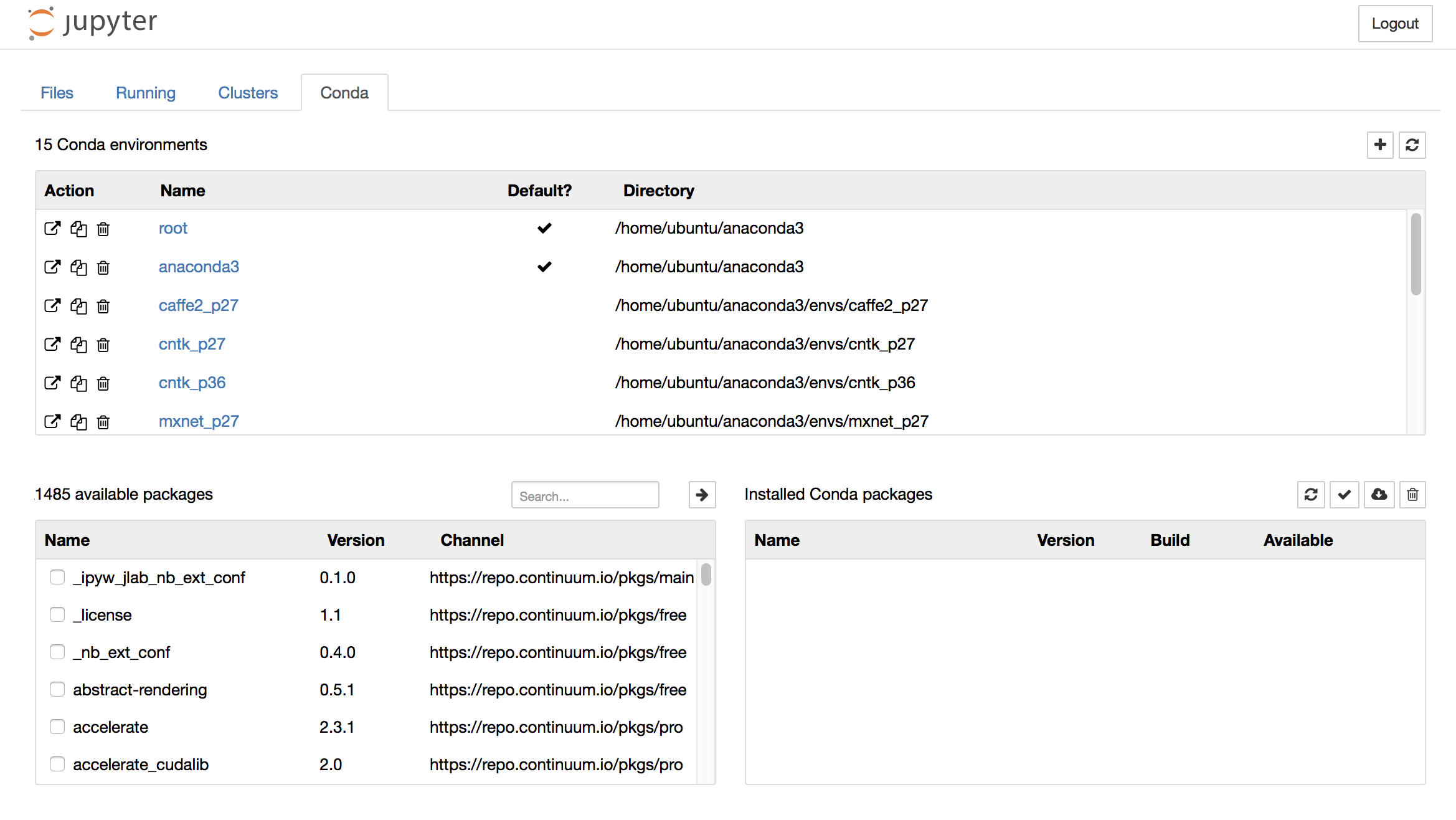 All you need to do is type in keras under the Search... bar under the available packages module. It'll retrieve the Python 3 versions. Just click the right-handed arrow and it will install. Now I opted to just use the Python - conda (root) notebook, since I installed Keras into the root.
