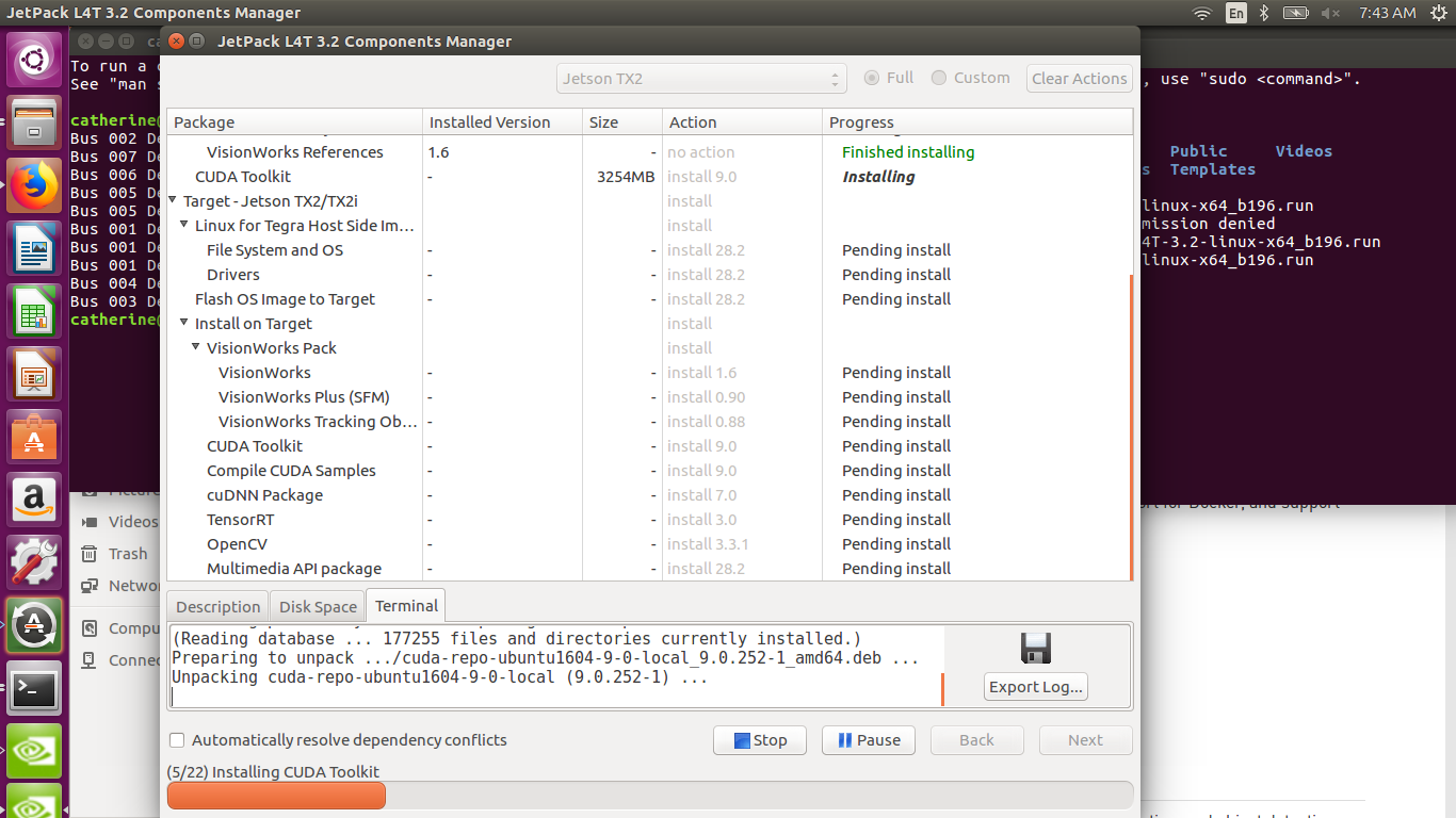 At this point, the Host connects to the Jetson and installs all the packages (target components) to it and it takes about 12 minutes. Hello World - Car Detection Demo