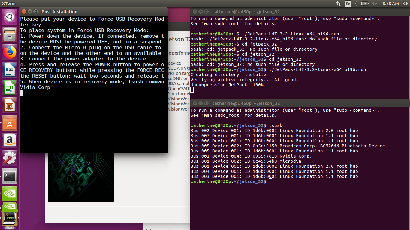 catherine@U4450p:~/JetPack3.2$ ./JetPack-L4T-3.2-linux-x64.run