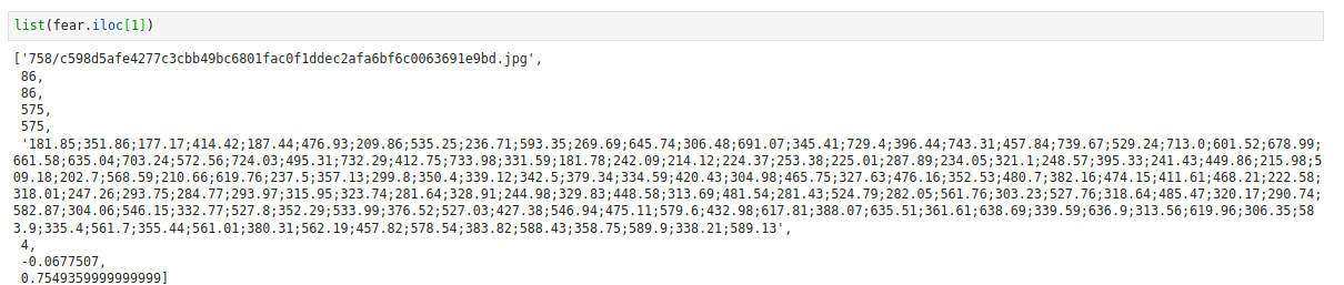 Of which we can nicely read into a dataframe and sort it by, in my case, the expression type == 4. I created a df called "fear" which is the expression for expression type 4.