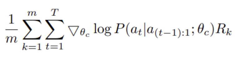 Third, this means that NAS averages over all the actions, a, for each timestep, t, over each state (e.g. child network). To me, this says "the probability to use hyperparameter a, for this m, child network, at timestep t".