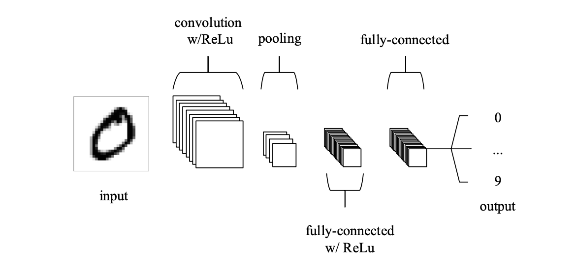 Different layers serve different purposes; convolutional layers apply spatial mappings between the outputs of one layer (called a feature map) with a receptive field (called a filter), pooling pllayers down-sample the feature maps, and fully connected layers connect all filters with one layer to all filters of the previous, each connection with its own weight.